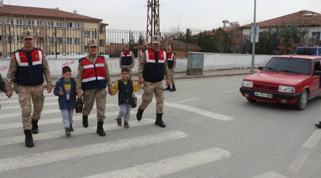 Uygulamada, öğrencilerinin okul çıkışı yaya geçidinden geçişleri esnasında jandarma ekipleri öğrencilere yardımcı olurken, sürücüler yaya geçiş üstünlüğü konusunda hem uyarıldı, hem de yaya geçişinin önceliğini hatırlatıldı.