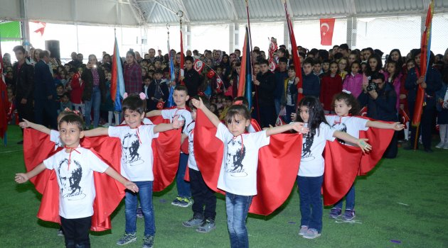 Tören saygı duruşu ve İstiklal Marşı ile başladı. İlçenin çeşitli okullarından ilkokul ve anaokulu öğrencileri 23 Nisan’ı dans gösterileriyle ve halk oyunlarıyla kutladılar. Çocukların sergilediği gösteriler izleyicilerden büyük alkış aldı.