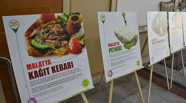MTSO binasının girişinde açılan sergide MTSO'nun coğrafi işaret tescilini yaptırdığı Malatya Kayısısı, Malatya Kağıt Kebabı ve Malatya Peynirinin de aralarında bulunduğu Malatya Kayısı Çekirdeği, Arapgir Mor Reyhanı, Hekimhan Cevizi, Malatya Köpük Pestili, Malatya Banazı Karası Üzümü, Malatya Dalbastı Kirazı, Malatya Tevek Yaprağı Sarması, Akçadağ Kömbesi, Malatya Tarhanası, Arapgir Dolaması, Malatya İçli Köftesi, Malatya Analı Kızlı Köftenin görseller ile tanıtımı yapılıyor.