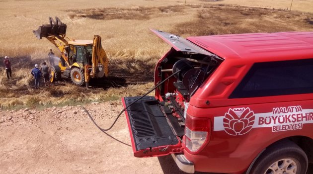 Malatya'da buğday ekili bahçede çıkan yangın itfaiye ekipleri tarafından söndürüldü.