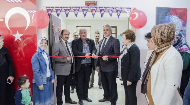 Törende, “Hayırlı olsun” dilekleriyle serginin açılış kurdelesi kesildi. Daha sonra konuklar, sergiyi gezerek kursiyerleri tebrik etti.