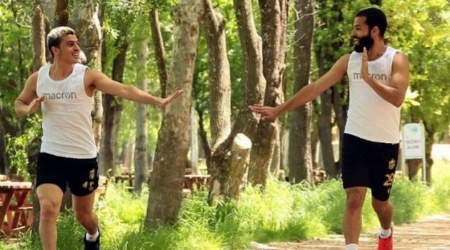 Sarı-kırmızılı takımın Mısırlı futbolcusu Karim Hafez ile Faslı futbolcusu Issam Chebake koşu esnasında sosyal mesafe kurallarını dikkate aldıklarını ilginç bir kareyle gösterdi.