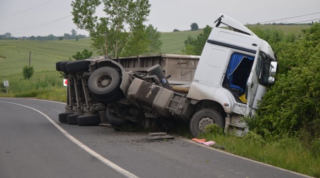 Tekirdağ'ın Malkara ilçesinde kontrolden çıkan tırın devrilmesi sonucu 1 kişi yaralandı.