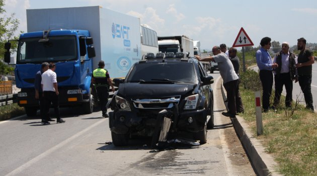 Manavgat ilçesinde D-400 Karayolu toplama yolda 2 kamyonetin çarpışması sonucu meydana gelen kazada 1 kişi yaralandı.