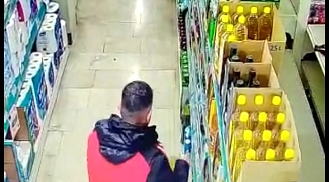 Markette hırsızlık güvenlik kamerasında