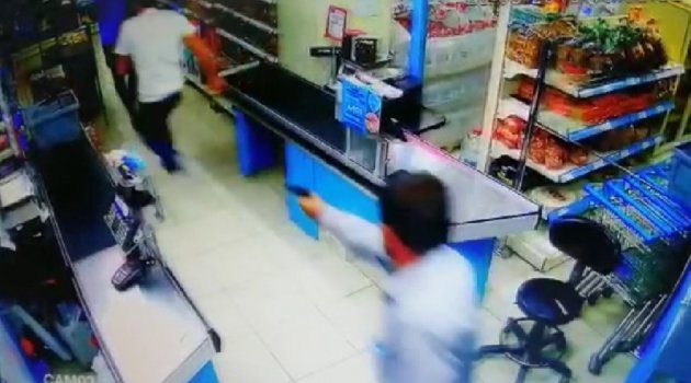 Marketteki silahlı kavga anı, iş yerinin güvenlik kameralarına anbean yansırken, görüntülerde yanındaki çocukla markete giren Mehmet B.'nin, iş yerindeki kasiyerle sohbet eden Orhan U.'ya omzu değdikten sonra ikilinin tartıştığı anlar yer alıyor. Görüntülerde, elinde tabanca bulunan Mehmet B.'nin tartıştığı kişilere ateş ettiği de görülüyor.