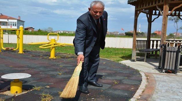 Samsun'un 19 Mayıs ilçesinde Mimar Sinan Mahallesi Muhtarı seçilen Abdullah Doğan, mazbatasını alır almaz süpürgeyi eline alarak çalışmaya başladı.