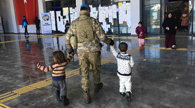 Mehmetçiğin dikkati sayesinde depremzede iki çocuk kaybolmaktan kurtuldu