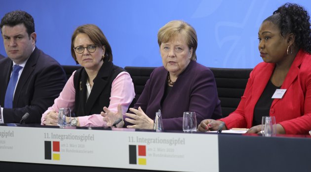 Uyum Zirvesi’nin ardından düzenlenen basın toplantısında konuşan Merkel, Türkiye'nin mülteciler için çok şey yaptığını söyledi. İdlib'de ateşkese ihtiyaç duyulduğunu belirten Merkel, Türkiye sınırında bulunan yüz binlerce Suriyeli mülteci için güvenli bölge oluşturulması gerektiğini söyledi. Angela Merkel, bunun nasıl sağlanabileceği ve Türkiye'ye nasıl destek olunabileceği hususunda liderlerle görüşmeler yaptığını kaydetti.