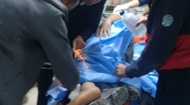 Mersin'in Tarsus ilçesinde bir beton fabrikasında çalışan işçinin bacağına saplanan çelik halat, hastanede itfaiye ekiplerince kesici alet yardımı ile çıkarılabildi.