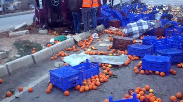 Meyve yüklü tır devrildi: 1 ölü, 1 yaralı