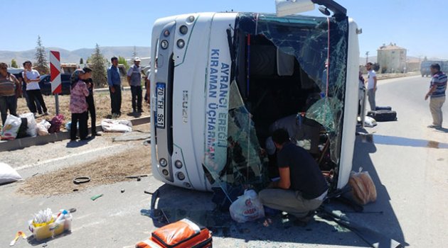 Kaza, Yeni Karaman Çevre Yolu kavşağında meydana geldi. Edinilen bilgiye göre, Ereğli’den Karaman’ın Ayrancı ilçesine gitmekte olan İbrahim E. (47) idaresindeki 70 FH 961 plakalı midibüs ile Salih Ç. (60) idaresindeki 14 AAF 508 plakalı tır çarpıştı. Çarpışmanın etkisiyle devrilen midibüsteki yolculardan Y.K. (14), Duran E. (24), Hatun E. (22), Nefaret K. (47), Ahmet T. (67), Berika T. (62), Mustafa Y. (73) ile araç sürücüleri İbrahim E. ve Salih Ç. yaralandı. Kaza ihbarı üzerine olay yerine polis ve çok sayıda ambulans sevk edildi. Yaralanan 9 kişi Ereğli Devlet Hastanesinde tedavi altına alındı. Kazanın ardından polis olay yerinde incelemelerde bulundu.