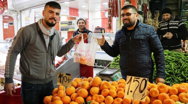 1 Ocak itibariyle yürürlüğe giren paralı poşet uygulaması bazı vatandaşların tepkisi görürken, bazıları da uygulamaya destek veriyor. Malatya'da bir pazarcı esnafı başlattığı kampanya ile 10 adet poşet getirene 1 kilo portakalı ücretsiz veriyor.
