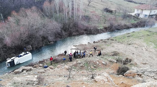 Malatya’da sürücüsünün kontrolünden çıkan bir minibüs yol kenarındaki dereye uçtu.