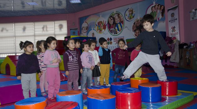 Malatya Büyükşehir Belediyesi Cemal Aslan Temel Beceri ve Eğitim Merkezi’nde 4-7 yaş aralığındaki çocuklar spor yapıyor. Merkezden, 2018 yılında anaokuluna giden 3 bin 500 öğrenci yararlandı.
