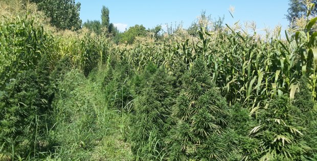 Mısır tarlası içerisin de kenevir bitkisi !