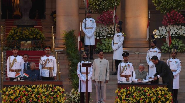Hindistan’da ikinci kez başbakan seçilen Narendra Modi yemin ederek görevine başladı. Modi başkanlığındaki yeni Hindistan Hükümeti için düzenlenen yemin töreni ulusal televizyonların tamamında yayınlandı. Bakanlar Kurulu üyeleriyle birlikte yemin eden Modi, ülkenin ciddi ekonomik sorunlarına rağmen (düşük GSYİH, yüksek işsizlik ve yüksek sosyal eşitsizlik) resmi olarak ikinci kez hükümet başkanlığı görevini üstlenmeyi başardı. Törene, dünyanın dört bir yanından devlet başkanları da olmak üzere yaklaşık 8 bin misafir katıldı. Davetliler arasında Modi’nin seçime hile karıştırdığını iddia ederek seçimin yenilenmesini talep eden Rahul Gandhi ve annesi Sonia Gandhi de yer aldı. Modi'yi zaferinden dolayı kutlamasına rağmen Pakistan Başbakanı Imran Khan’ın yemin törenine katılmaması dikkat çekti.