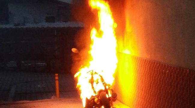 Motosiklet alev alev yandı!