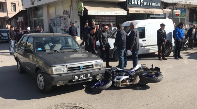 16 FCC 14 resmi plakalı otomobil, Ziya Özbek Sokağı'ndan Atatürk Caddesi'ne çıkmak isterken 16 SL 196 plakalı motosikletin sürücüsü G.K ile çarpıştı. Kazada motosiklet sürücüsü yaralandı. Yola savrulan genç sürücüye 112 ekipleri müdahale etti. G.K, İznik Devlet Hastanesi'ne kaldırılarak tedavi altına alındı.
