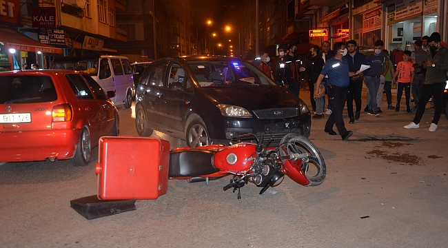 Ordu'nun Ünye ilçesinde yemek firmasında çalıştığı öğrenilen motosiklet kuryesi otomobil ilçe çarpışması sonucu yaralandı.