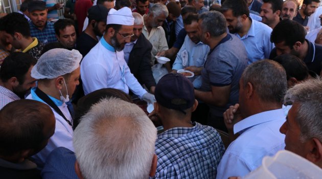 Şire Pazarı ve Buğday pazarında düzenlenen etkinlikte konuşan MTB Başkanı Ramazan Özcan, “İkinci senenin ilk ayı olan Muharrem ayı onuncu günü aşure günüdür. Aşure paylaşmanın dayanışmanın birliğin ve beraberliğin sembolüdür. Tabi bu mübarek günde Kerbela’yı, Hz. Hüseyin’i anmadan geçemeyeceğiz. Hüseyin’i duruş ahlaktır, adamlıktır, adalettir. Hz. Hüseyin ve ashabı Kerbelada kanlarını çöle dökmüşlerse de haklılıkları bütün yezit kafilesi tarafından yenilgiye uğratılmıştır" diye konuştu.