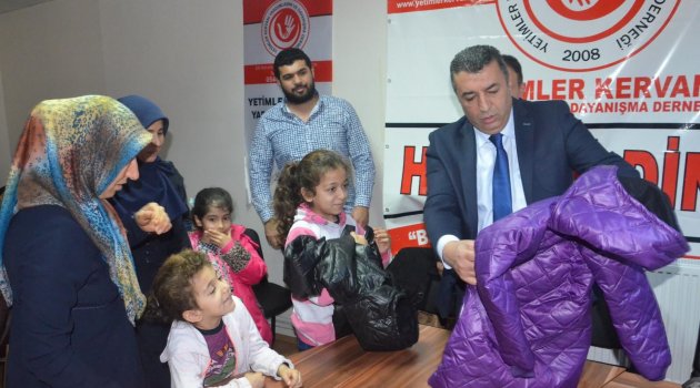 Dernek binasında düzenlenen törende yetim çocuklara verilmesi amacıyla 50 adet bot, 50 adet de kışlık mont verildi.