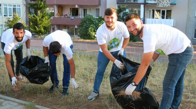 Mudanya Şükrü Çavuş Mahalle Muhtarı Şeref Şaş, ekibi ve gönüllü mahalleli gençlerle 'Mahallemizi evimiz gibi temiz tutalım" sloganıyla çevre temizliği yaptı.