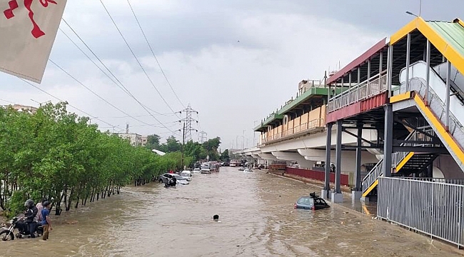 Pakistan'ın Karaçi kentinde etkili olan Muson yağmurları sele neden oldu. Birçok araç ve yaya yollarda mahsur kalırken, cadde ve sokaklar göle döndü.