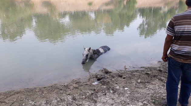 Adana’nın Ceyhan ilçesinde nehre düşen at itfaiye ekipleri tarafından kurtarıldı.