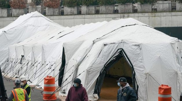 New York eyaleti artan korona virüs ölümleriyle başa çıkmak için soğutmalı kamyon ve çadırlardan morglar kurdu.