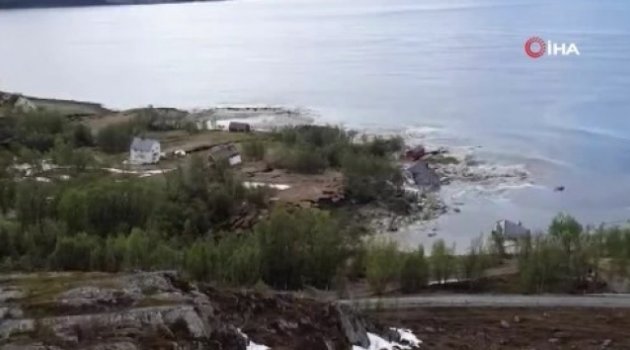 Norveç'in Krakneset bölgesinde meydana gelen heyelanda kayan toprak parçası üzerindeki 8 ev suya gömüldü.