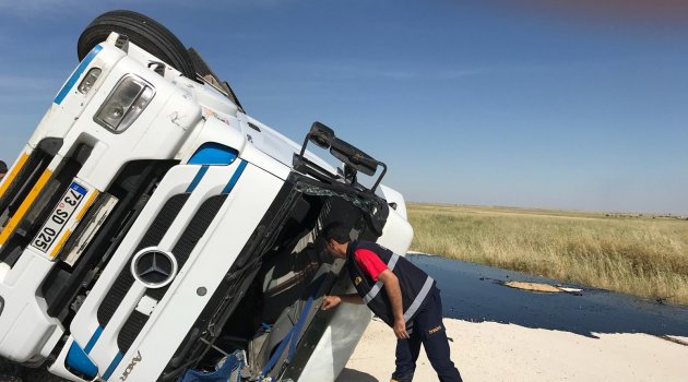 Mardin'in Nusaybin ilçesinde ham petrol yüklü tankerin devrilmesi sonucu sürücü yaralandı.