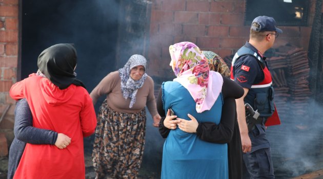 Odunlukta çıkan yangın 2 ahır ve evi kullanılamaz hale getirdi