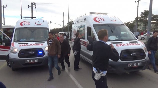 Kaza, Kırıkkale Millet Bulvarı'ndaki Rektörlük Kavşağı'nda meydana geldi. Edinilen bilgiye göre, bulvarda seyir halinde ilerleyen Mesut Alsaç idaresindeki 71 BF 415 plakalı şehir içi yolcu minibüsü ile yan yoldan çıkan Musa Yalçın idaresindeki 71 S 0232 plakalı öğrenci servisi aracıyla kafa kafaya çarpışması sonucu 3 kişi yaralandı. Arkadan gelen Aynur Öztürk yönetimindeki otomobil ile Mesut Öztürk idaresindeki 71 BS 208 plakalı otomobilin kazaya karışması sonucu maddi hasar meydana geldi. Şoför Musa Yalçın ile yolculardan Mustafa Varışlı ve Tamer Keleş yaralandı. Olay yerine çağrılan 112 Acil Servis ekipleri tarafından yaralılara ilk müdahale yapıldıktan sonra çeşitli hastanelere kaldırılarak tedavi altına alındı.
