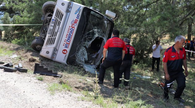 Öğretmen ve çocuklarını taşıyan midibüs devrildi: 17 yaralı