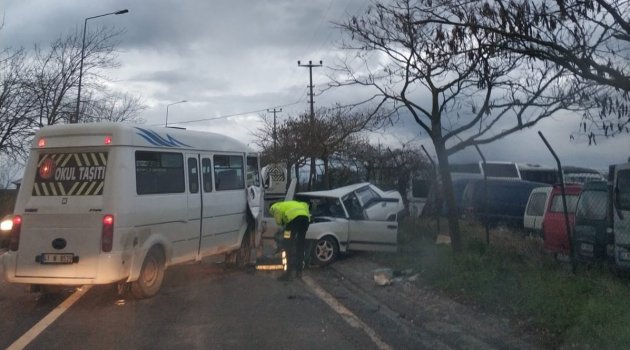 Okul servisi ile otomobil çarpıştı 4 yaralı