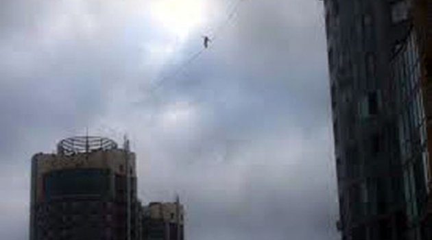 Rusya’nın St. Petersburg kentinde 27 kat yüksekliğindeki iki bina arasına gerilen ipte yürüyen cambaz yürekleri ağza getirdi.