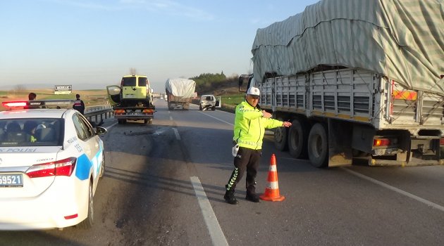 Kaza Bursa-Ankara yolunda meydana geldi. Bursa istikametinden İnegöl'e doğru seyir halinde olan İsse S. (22) idaresindeki 16 MG 761 plakalı minibüse arkasından gelen Ali G. (56), idaresindeki 16 LN 253 plakalı hafif ticarî araç çarptı. Savrulan hafif ticarî araç bariyerlere çarparak ancak durabildi.