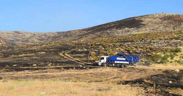 İtfaiye ekipleri ve arozözlerle yapılan çalışmayla büyük oranda kontrol altına alınan yangına ilişkin N.K. ve İ.K. ifadeleri alınmak üzere polis merkezine götürüldü.