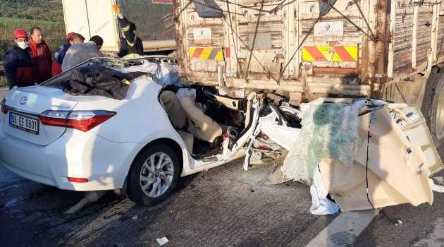 Alınan bilgiye göre, Şanlıurfa’nın Ceylanpınar ilçesinde Tarım İşletmeleri Genel Müdürlüğü’nde (TİĞEM) çalışan Muhammet Talha Çoban'ın (29) kullandığı 06 EE 0601 otomobil, E 90 Otoyolu Düziçi turnikeleri, Ellek Beldesi mevkisinde sürücüsü öğrenilemeyen 41 E 5523 plakalı kamyona arkadan çarptı. Kazada hurdaya dönen otomobilin sürücü ile yanında bulunan Rahime Aslı Atça (19) ve Beste Sayıner’de (18) kaldırıldıkları Düziçi Devlet Hastanesinde hayatını kaybetti. Yaralılar Halil Barış Tunçbilek (18) ve Çağrı Çakmak'ın (19) ise tedavisi sürüyor.