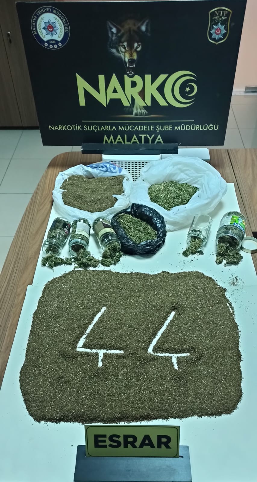 Edinilen bilgiye göre, Malatya Emniyet Müdürlüğü Narkotik Suçlarla Mücadele Şube Müdürlüğü görevlilerince torbacı olarak tabir edilen sokak satıcılarına yönelik operasyon yapıldı. Yapılan çalışma sonucu 2 şahsın evinde ve iş yerlerinde arama yapıldı. Aramada, 2 kilo 918 gram esrar ele geçirildi.
