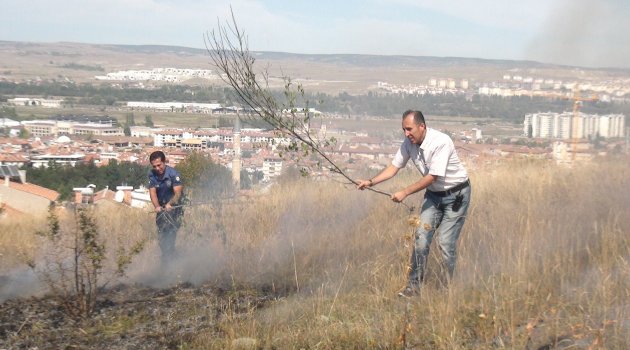Kütahya’da otluk alanda bilinmeyen nedenle yangın çıktı. Yerleşim yerlerine 5 metre mesafede çıkan yangında, mahalleli ise ellerine aldıkları dal parçaları ve kürekler ile yangına müdahale etti. Yangın itfaiyenin uzun uğraşları sonucu kontrol altına alındı.