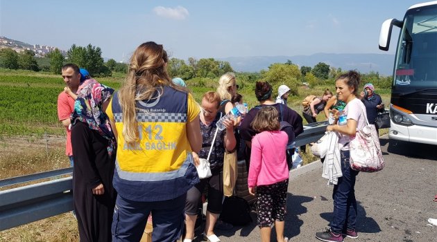 Bir çoğunun uyuduğu öğrenilen yolcular kazanın sarsıntısı ile uyandı. Büyük korkunun yaşandığı kazada yolculardan Gülay Ceylan (25), Eda Ceylan, Kamuran Akın ve Selma Şişman yaralandı. Kaza yerine bölgeden çok sayıda ambulansın yanı sıra kurtarma ekibi sevk edildi. Yaralılar ambulanslarla Orhangazi ve Gemlik hastanelerine kaldırıldı. Kaza sebebi ile trafik akışı bir müddet kontrollü olarak sağlandı. Kazayla alakalı tahkikat sürüyor.