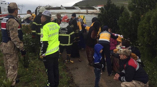 Kaza Gaziantep-Nurdağı yolunun 45. Kilometresinde meydana geldi. 48 V 2784 plakalı minibüsün sürücüsü M.F. yağış nedeniyle kayganlaşan yolda direksiyon hakimiyetini kaybedince araç refüje devrildi. Yaklaşık 35 metre sürüklenen minibüste bulunan 2'si çocuk 10 kişi yaralandı.