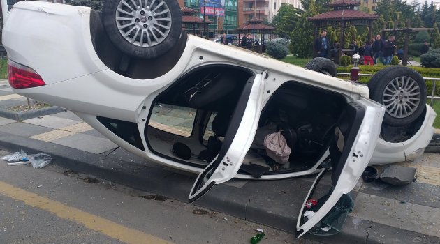 Otobüs durağına çarpan otomobil takla attı: 2 yaralı