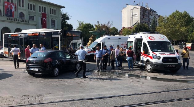 Kaza, Cumhuriyet Bulvarı ile Atatürk Bulvarı kesişiminde meydana geldi. M.Y.H. (41) idaresindeki otomobil ile L.K.D.'nin (31) sürücülüğünü yaptığı belediye otobüsü çarpıştı. Kaza sonucu otomobil sürücüsü M.Y.H. ile yolcu K.H. (37) yaralandı. Yaralılar 112 Acil Sağlık ekipleri tarafından hastaneye kaldırılırken, hayati tehlikelerinin bulunmadığı öğrenildi.