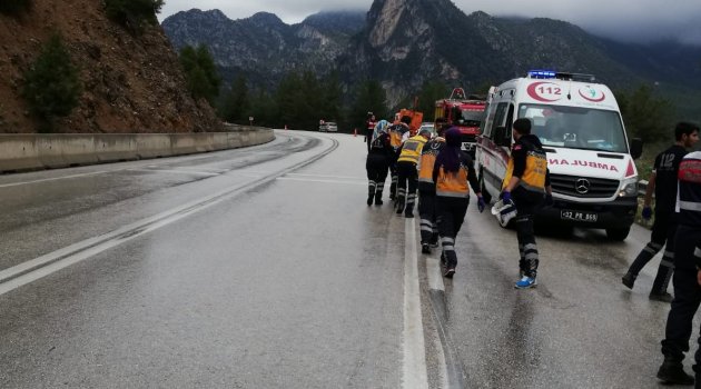 Edinilen bilgiye göre kaza, saat 15.00 sıralarında Isparta-Antalya karayolu Kazak Tünelleri mevkiinde meydana geldi. İddiaya göre, Erol A. yönetimindeki 07 NCV 27 plakalı otomobil, yağışlı hava ve kayganlaşan zeminde sürücünün direksiyon hakimiyetin kaybetmesi sonucu 25 metre yükseklikten dereye uçtu. Talihsiz kazada sürücü Erol A. ve yanında bulunan eşi yaralandı. Olay yerine 112 Acil Servis, Isparta Belediyesi İtfaiye Müdürlüğü kaza kırım ve jandarma ekipleri sevk edildi. İtfaiye ekipleri, yaralıları 25 metre aşağıda bulunan deredeki araçtan güçlükle çıkarttılar. Kurtarılan yaralılar daha sonra sağlık ekiplerine teslim edilerek, hastaneye sevk edildi.