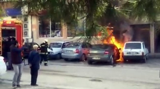 Edinilen bilgiye göre, yangın Acıpayam ilçesi Yukarı Mahallesi’nde meydana geldi. Park halindeki 16 BN 542 plakalı araçtan dumanlar çıktığını gören vatandaşlar 112 Acil Çağrı Merkezi’ni arayarak yardım istedi. İhbar üzerine bölgeye kısa sürede itfaiye ekibi sevk edildi. Bu sırada otomobili saran alevler yan tarafta bulunan araca da sıçradı. Bir anda alevler arasında kaybolan araçta ara ara küçük çaplı patlamalar meydana geldi. Birkaç dakika içinde bölgeye gelen itfaiye ekipleri hızlı müdahale ile yangını kısa sürede söndürdü. O anları cep telefonuna kaydeden vatandaş ve çevredekiler olay yerinden hızla kaçarak araçların arkasına saklandı.