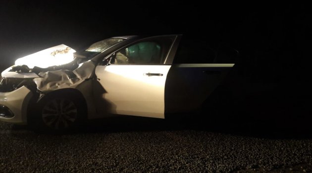 Otomobil aniden yola çıkan ineğe çarptı: 4 yaralı