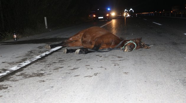 Edinilen bilgiye göre, Tokat’tan Turhal istikametine seyir halinde olan İlhamı G. (36) idaresindeki 60 PA 578 plakalı otomobil gecenin karanlığında aninden önüne çıkan başıboş ata çarptı.